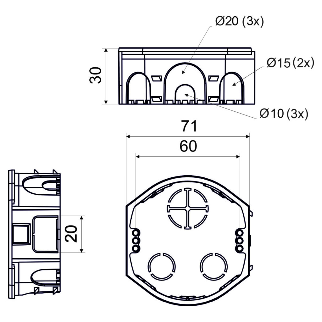 KU 68-45 - INSTRUMENT BOX, configuration KA, color gray, packaging of 150 pcs in a carton - possibility of connection in a continuous row with a spacing of 71 mm, boxes can be connected with boxes KU 68-45, KPR 68-70, KP 68/D, KPR 68/D, possibility of inserting screwless clamp