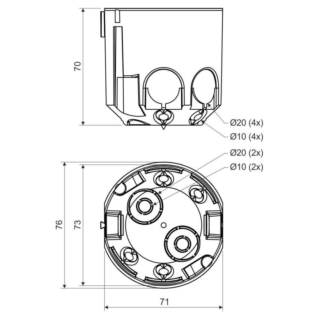 > A dobozokat összefüggő vízszintes sorba lehet kapcsolni 71 mm tengelytávolsággal.