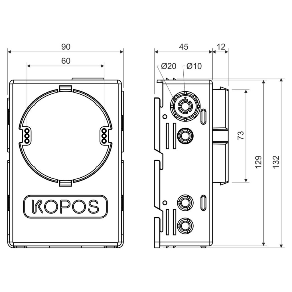 KUH 1 - Box Universal, configuration KA, colour light grey, package - 1/35 pcs - allows insertion of active elements under the device, the possibility of inserting the terminal plate S -66 directly under the device