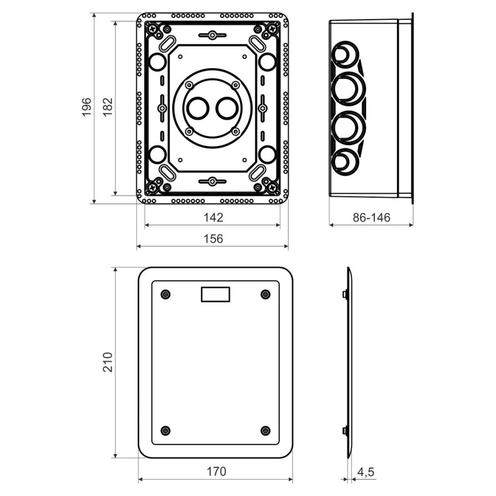 > Felszerelhető 80 mm-től 140 mm vastag hőszigetelő burkolatba, vagy vakolat alá.