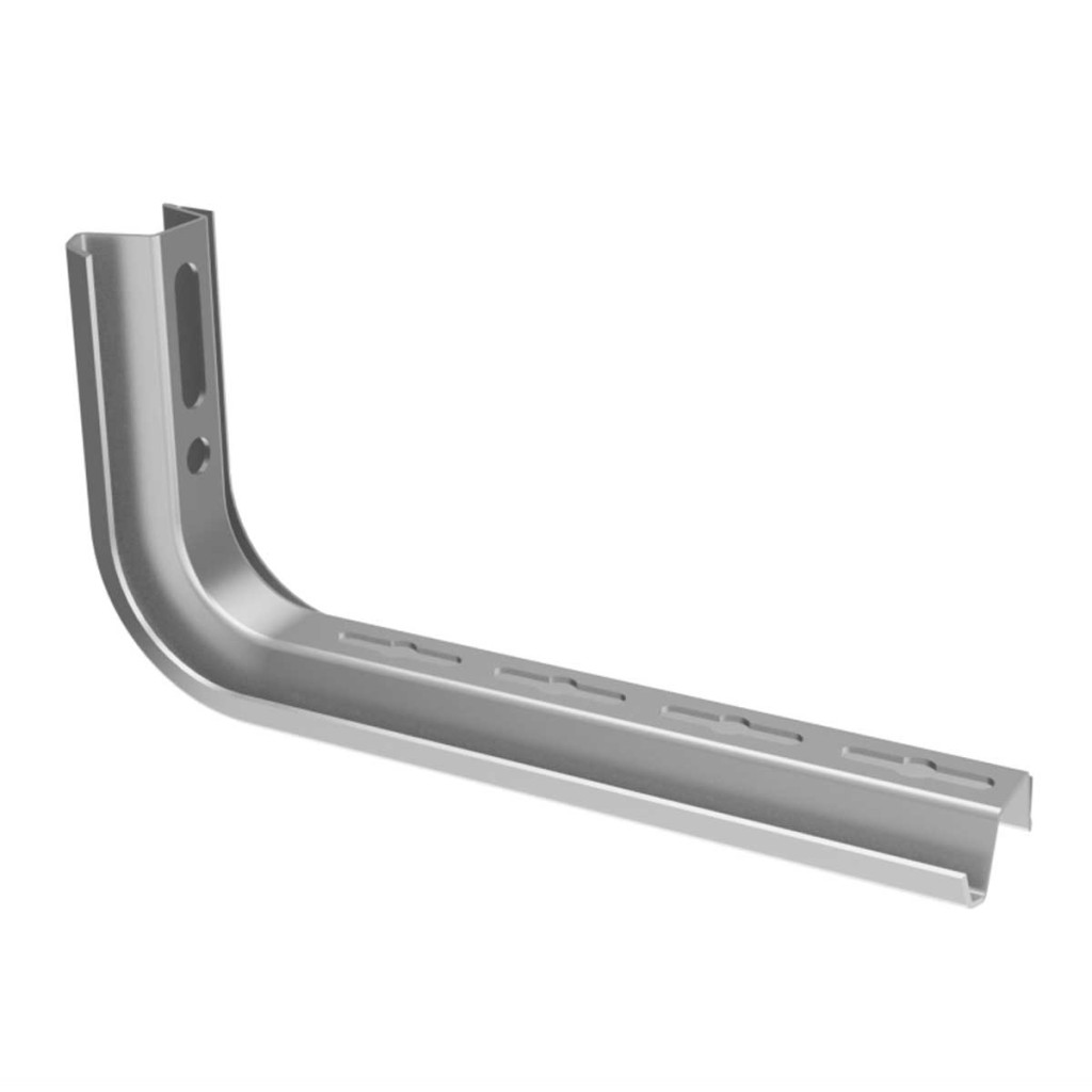 L type bracket for assembly of cable tray with width 100 mm to the wall. Profiiled bracket for providing higher firmness. To prevent deformation there is the STS stiffener