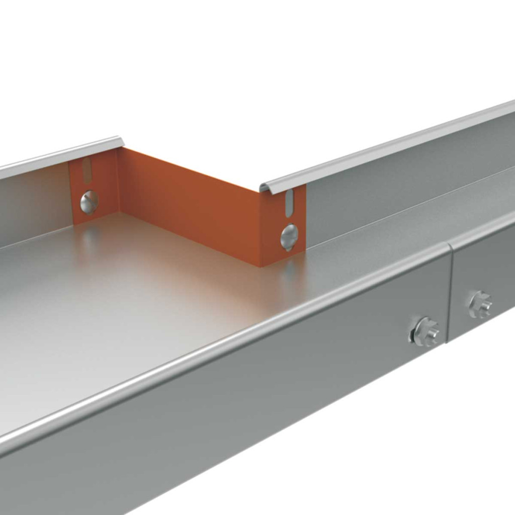 Reduction for narrowing or widening of the route by 125 mm, suitable for cable trasy with sideboard height 50 mm made from stainless steel