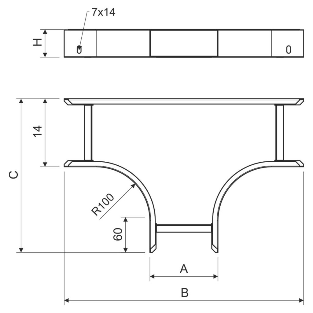 T piece for branching from route on the stainless steel cable trays with dimension 50x125, suitable pro smade from stainless steel material