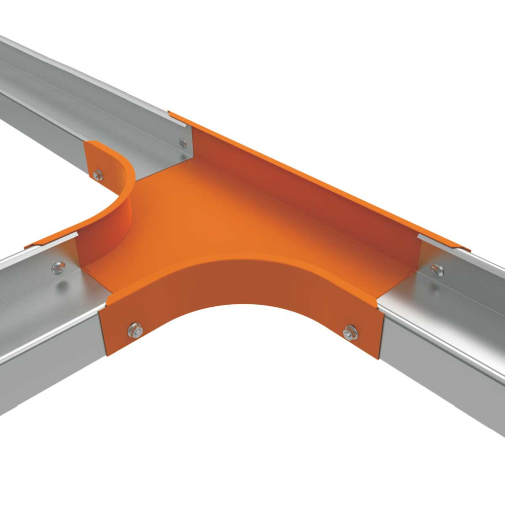 T piece for branching from route on the stainless steel cable trays with dimension50x250, suitable pro smade from stainless steel material