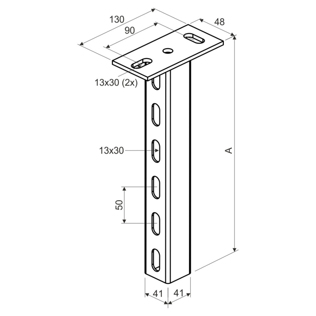 Medium ceiling profile for suspending cable trays from ceiling using booms, length 1000 mm, surface treatment hot dip galvanized