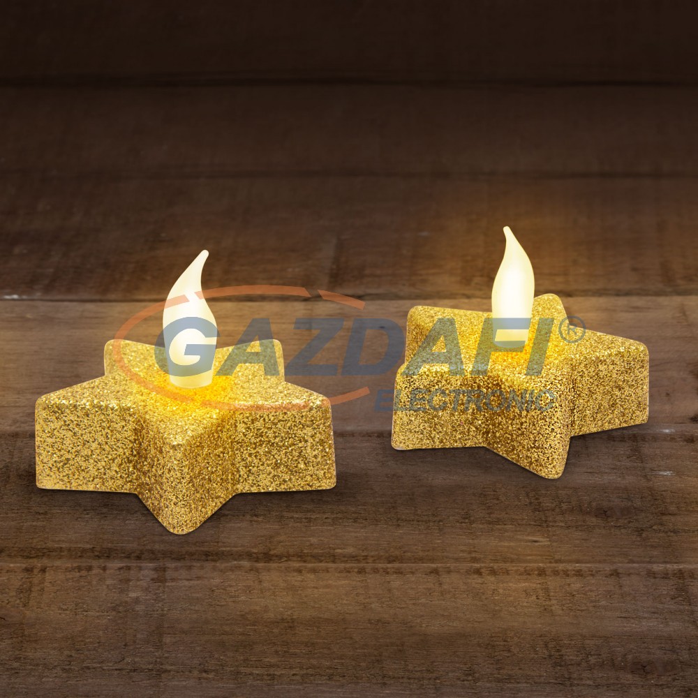 Csillámos, csillag alakú LED-es teamécses, amely nem gyúlékony, nem veszélyes, a szél sem fújja el. A kis mécsesben lévő LED véletlenszerű villódzásával a gyertyaláng hatását kelti. Egyszerűen ki/be kapcsolható az alján található kapcsolóval. 1 db CR2032 típusú gombelemmel működik, amely tartozék.