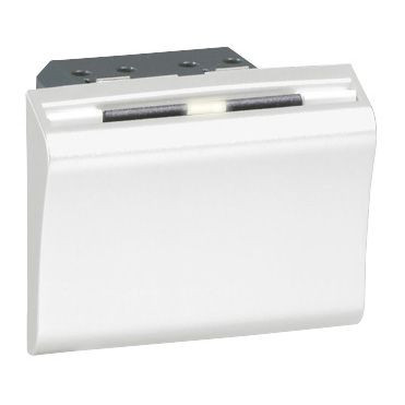 LEGRAND 076728 Program Mosaic elektronikus hotelkártya-kapcsoló, 2 modul széles, kizárólag MIFARE kontaktus mentes ISO szabványú kártyákkal működik (pl. kat.szám 076711/12/13), kapcsolható teljesítmény: 110 V~ - 15 VA, 230 V~- 30 VA, fehér