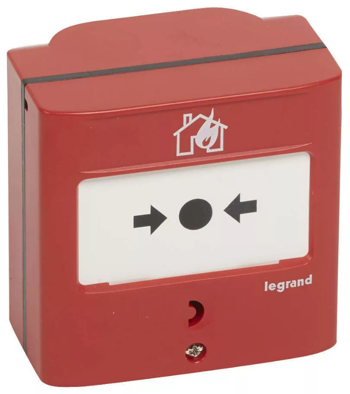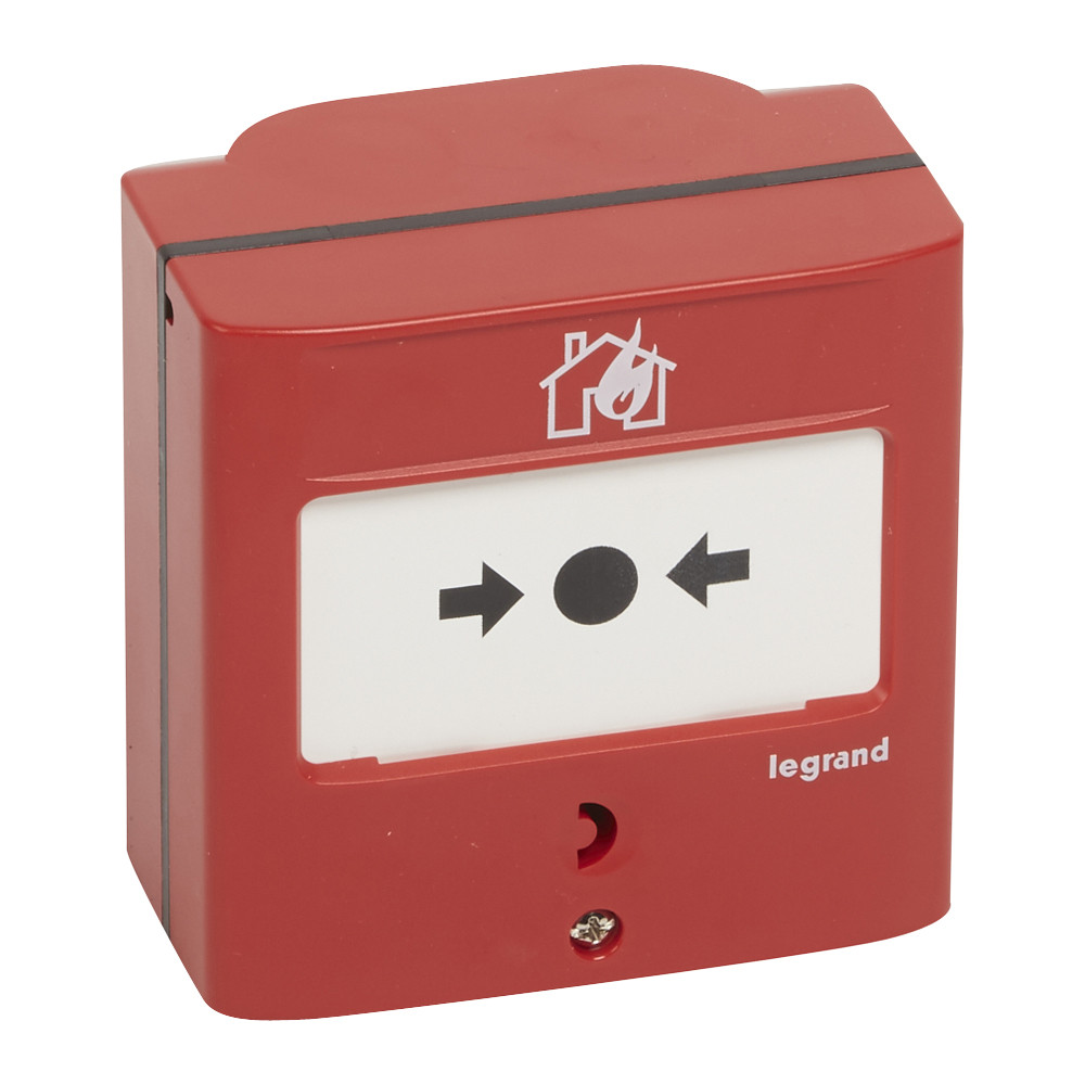 LEGRAND 138068 Kézi jelzésadó tűzérzékelő és tűzjelző rendszerekhez, egyműveletes, piros RAL 3000, 2 váltóérintkezővel - 5A - 24V=, IP30 - IK07
