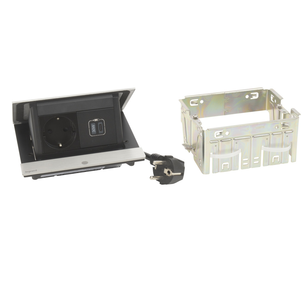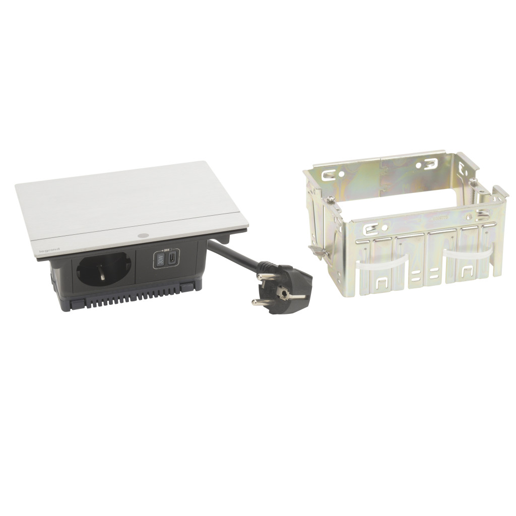LEGRAND 654828 Incara Pop-up - bútorba süllyeszthető, 4 modul, 2P+F + USB C aljzat, rozsdamentes acél