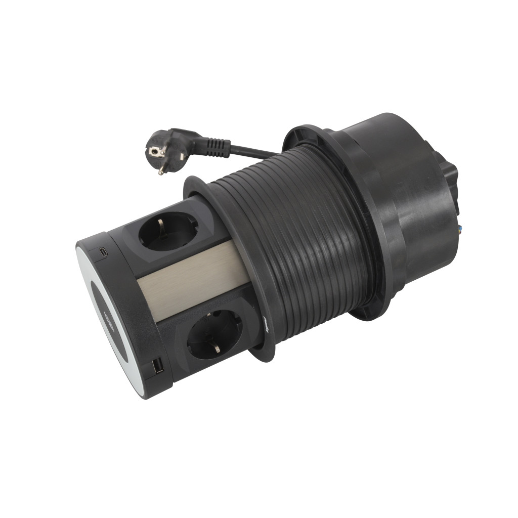 LEGRAND 654983 Incara Tower 120 - bútorba süllyeszthető, 4x2P+F + 2xUSB A+C aljzat + vezeték nélküli töltő, 2m kábellel