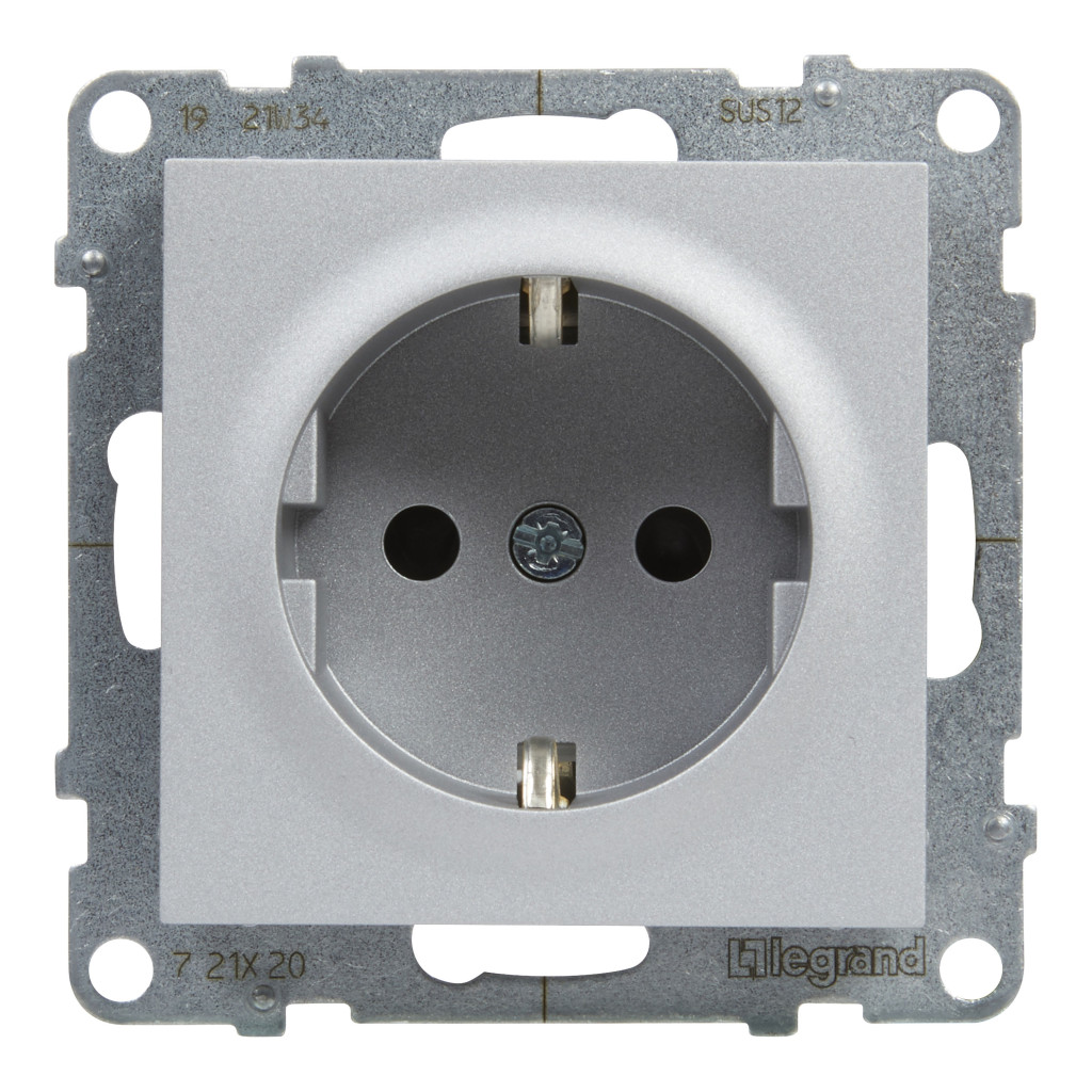 LEGRAND 721320 Suno 2P+F dugalj csatlakozóaljzat (rugós), biztonsági zsaluval, alumínium