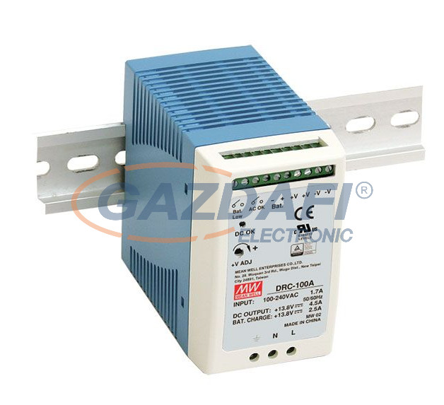 Mean Well DRC-100B Kétkimenetes sínre pattintható tápegység és akkumulátor töltő, 100 W