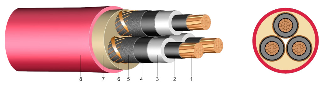 N2XSEY 3x120/16 mm2 Három erű, térhálós PE szigetelésű kábel PVC köpennyel 6/10 kV piros általános leírása: