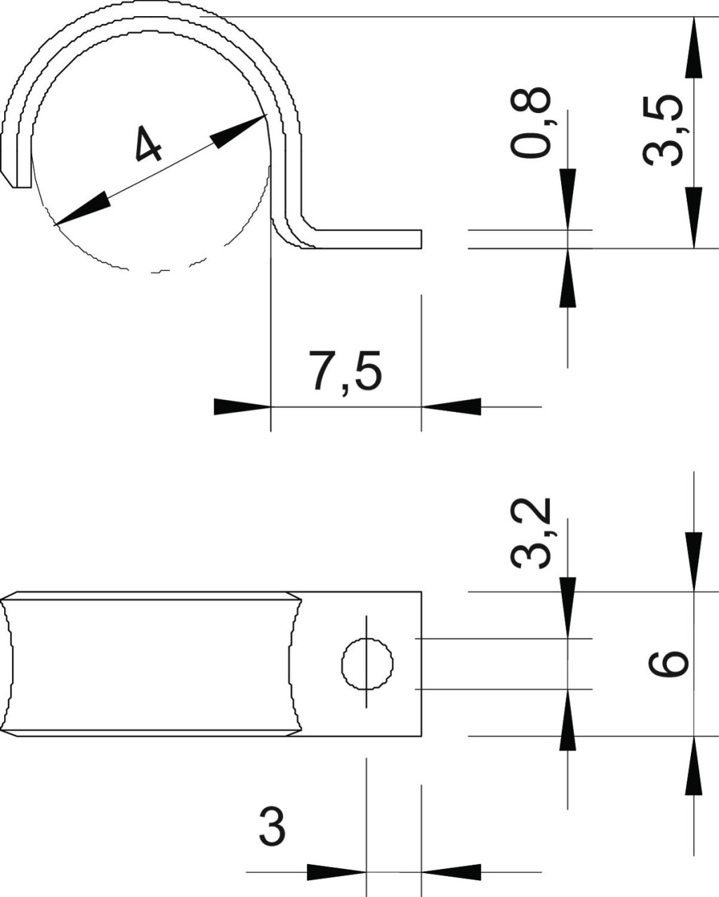 OBO 1043064 WN 7855 A 4 Rögzítőbilincs, könnyű kivitel, 4mm galvanikusan horganyzott acél, átlátszóra passziválva