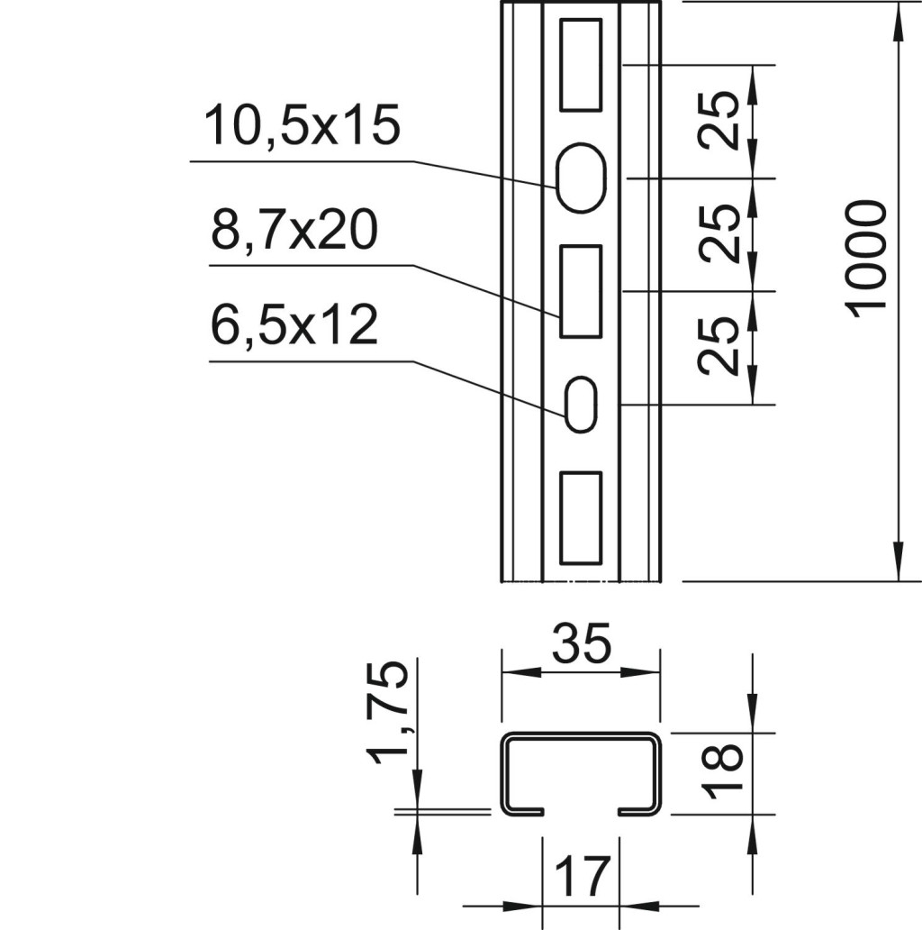 OBO 1104598 CMS3518P1000FT Profilsín perforált, nútszélesség 17 mm merítetten tűzihorganyzott 1000x35x18mm [FAD]