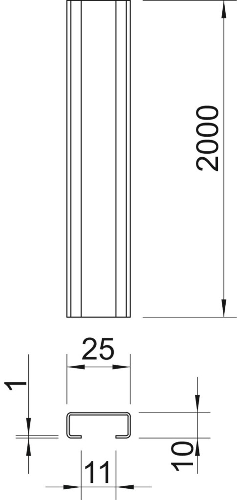 OBO 1107038 profilsín perforálás n., nútsz. 11 mm 2000x25x10 acél felületkezelés nélkül