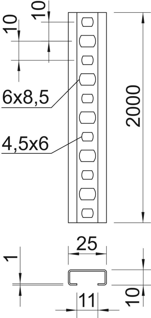 OBO 1108123 CL2510P2000FS Profilsín CM3518, 17 mm résméret, 2000mm szalaghorganyzott acél [FAD]