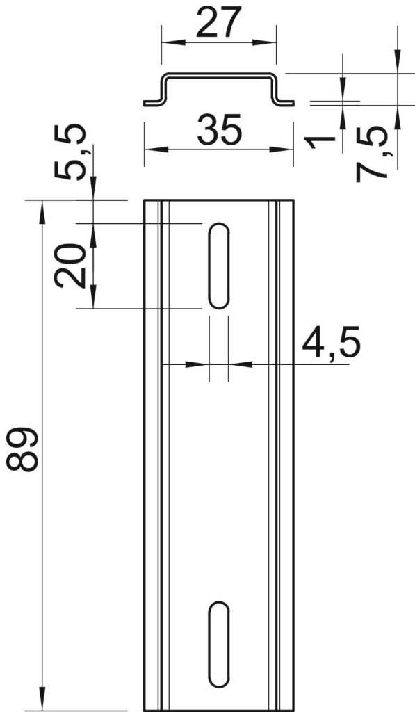 35 x 7,5 mm méretű kalapsín az MSZ EN 60715 (korábban MSZ EN 50022) szerint.