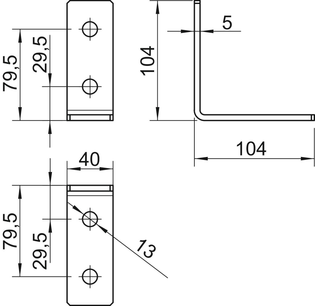 Szerelőszeglet 2-2 furattal 41 x 41 mm és 41 x 21 mm méretű profilsínek derékszögben történő összekötéséhez.