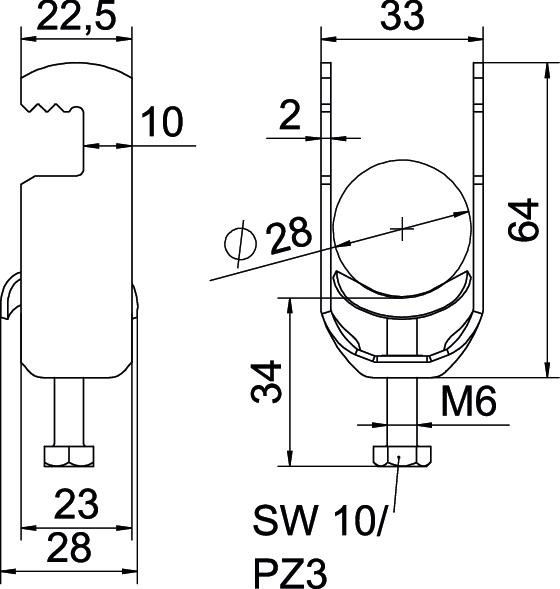 Kengyeles bilincs F-kivitel, a fém nyomóvályú legömbölyített peremmel rendelkezik, így nem kell tartani a kábel sérülésétől. Függőleges és vízszintes szereléshez 1 kábel részére, laposvashoz. Egymenetes csavar a nyomóvályún, univerzális hatlapfejű csavarfej SW10/PZ3 kereszthoronnyal. Kültéri és beltéri szereléshez alkalmas. Ellendarab használata ajánlott. 4-12 mm anyagvastagsághoz.