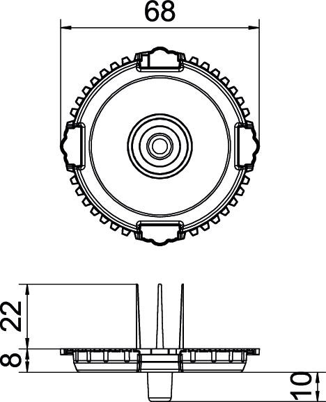 Vakolófedél a vakolat alatti dobozok védelmére vakoláskor. Piros színben. A jelölősörték segítségével a vakolás után is könnyen megtalálhatóak a dobozok.