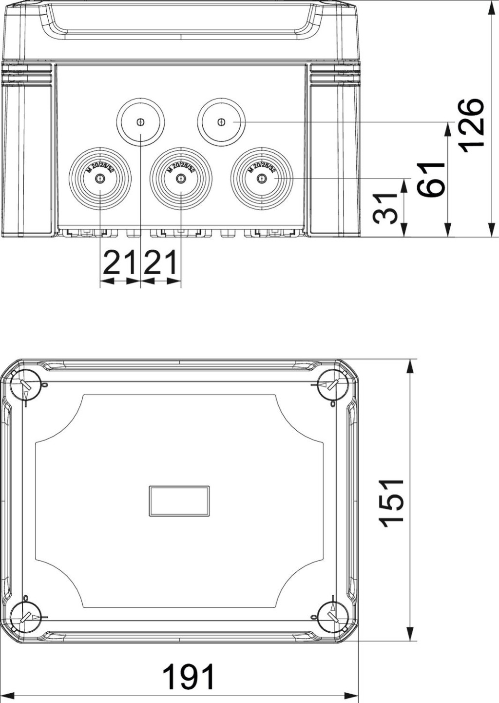 Leágazódoboz kalapsínnel kábelek és vezetékek csatlakoztatására beltéren és kültéren. Téglalap alakú, kitörhető nyílásokkal. Alkalmas fali / mennyezeti szereléshez, külső és belső rögzítéssel vagy sarokdómon keresztül történő felszereléssel. IK09 esetében különösen ütésálló. Átlátszó fedél gyorszárral, plombálható. Halogénmentes és UV-álló anyagokból készült.