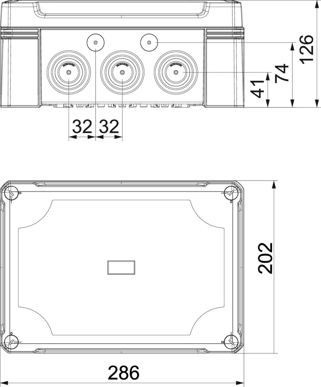 Leágazódoboz kábelek és vezetékek csatlakoztatására beltéren és kültéren. Téglalap alakú, kitörhető nyílásokkal. Alkalmas fali / mennyezeti szereléshez, külső és belső rögzítéssel vagy sarokdómon keresztül történő felszereléssel. IK08 alapján különösen ütésálló. Fedél gyorszárral, plombálható. Halogénmentes és UV-álló anyagokból készült.