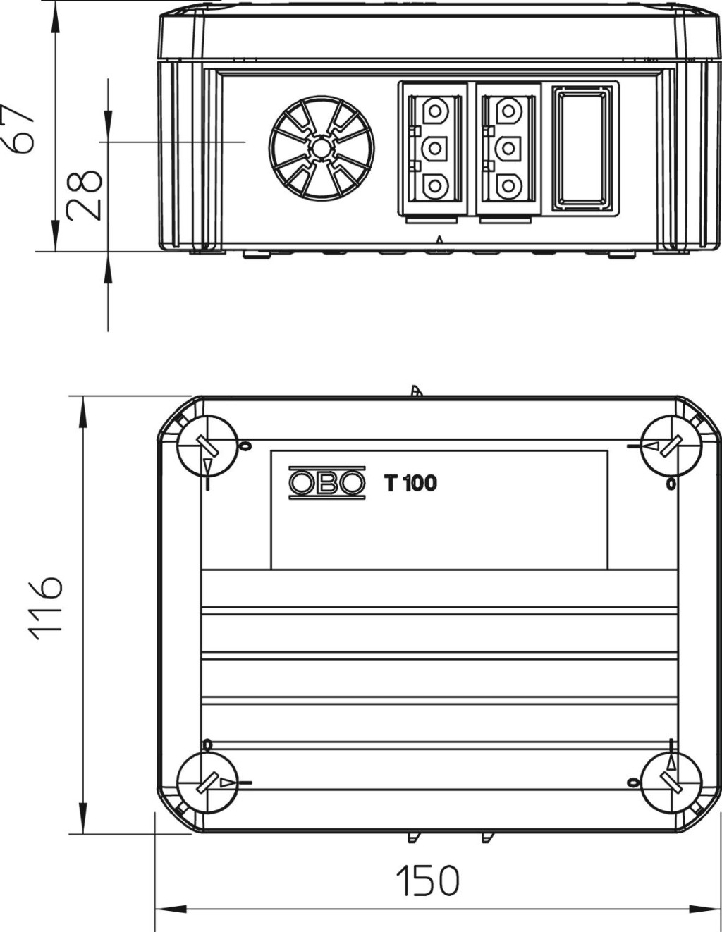 OBO 2007876 T100 WS 1S3 2S3D Leágazódoboz Wieland csatlakozóval 1S3+2B3 150x116x67mm polipropilén