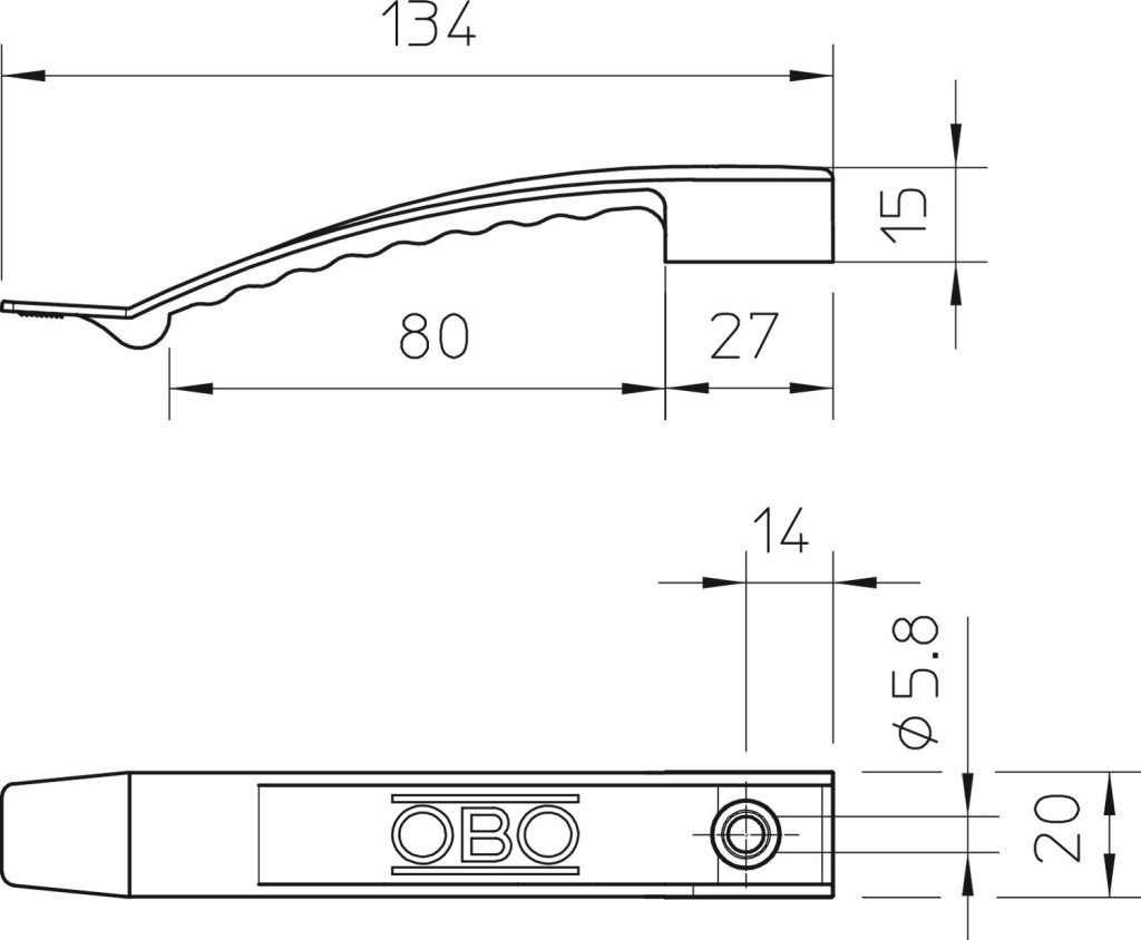 Tartókapocs magasság 9 mm, távtartóval 13 mm. 6 mm átmérőjű rögzítőfurat.