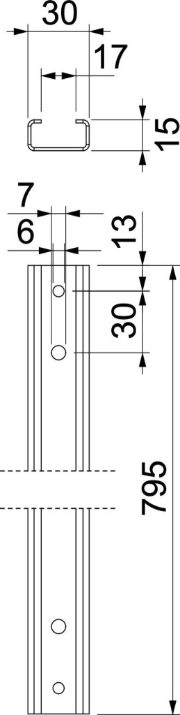 Perforated rung, C profile version, for subsequent installation and use in cable ladders. To be screwed on. Fastening material must be ordered separately.