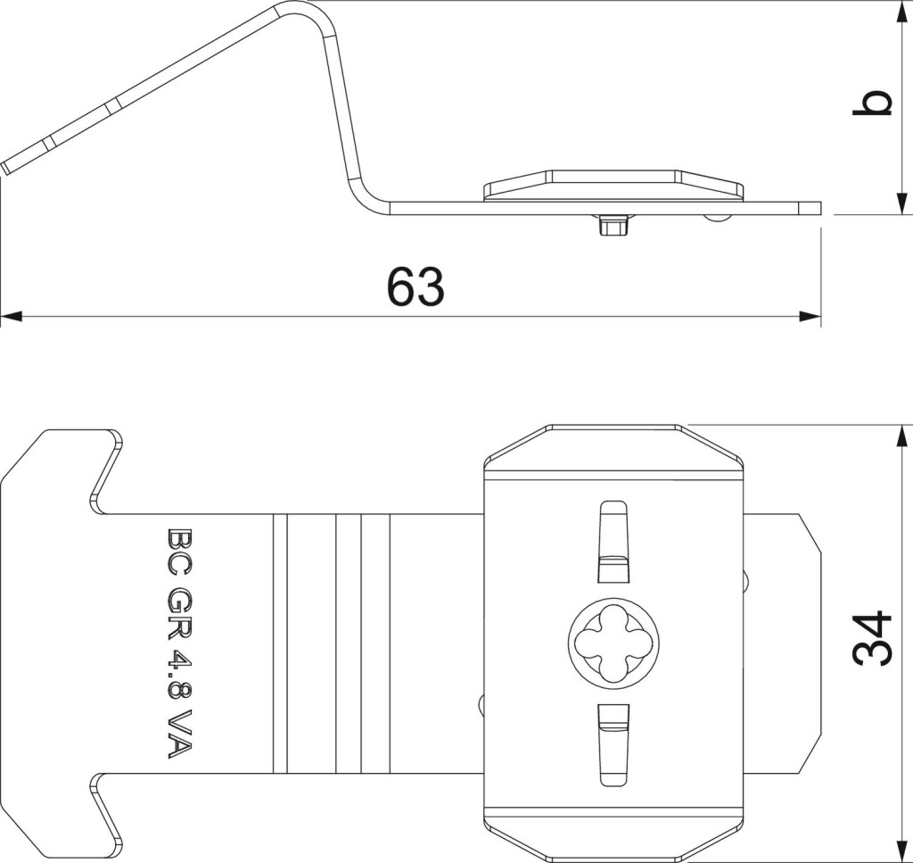 OBO 6016665 BC GR 4.8 VA Rögzítő Clip Rácsos Kábeltálcához MS profilhoz 82x33x17mm rozsdamentes acél