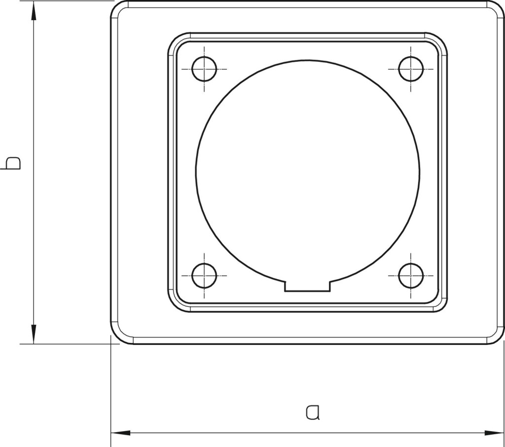 Közbenső perem 16 A-es CEE csatlakozóaljzathoz. A CEE szerelvénydobozt beszerelésénél a fedél mögé kell szerelni.