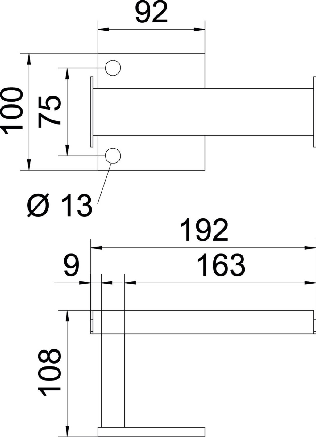 Zárt, téglalap alakú acélprofilból készült távtartó láb a lépésálló kábeltartó-rendszerhez.