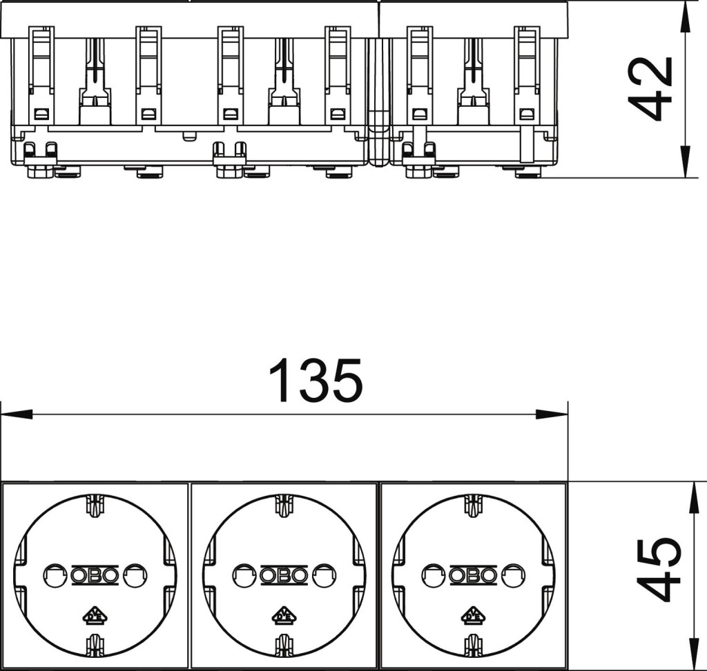 OBO 6120042 STD-D0 RW3 Csatlakozóaljzat 0°, Hármas védőérintkezős 250V, 10/16A hófehér polikarbonát