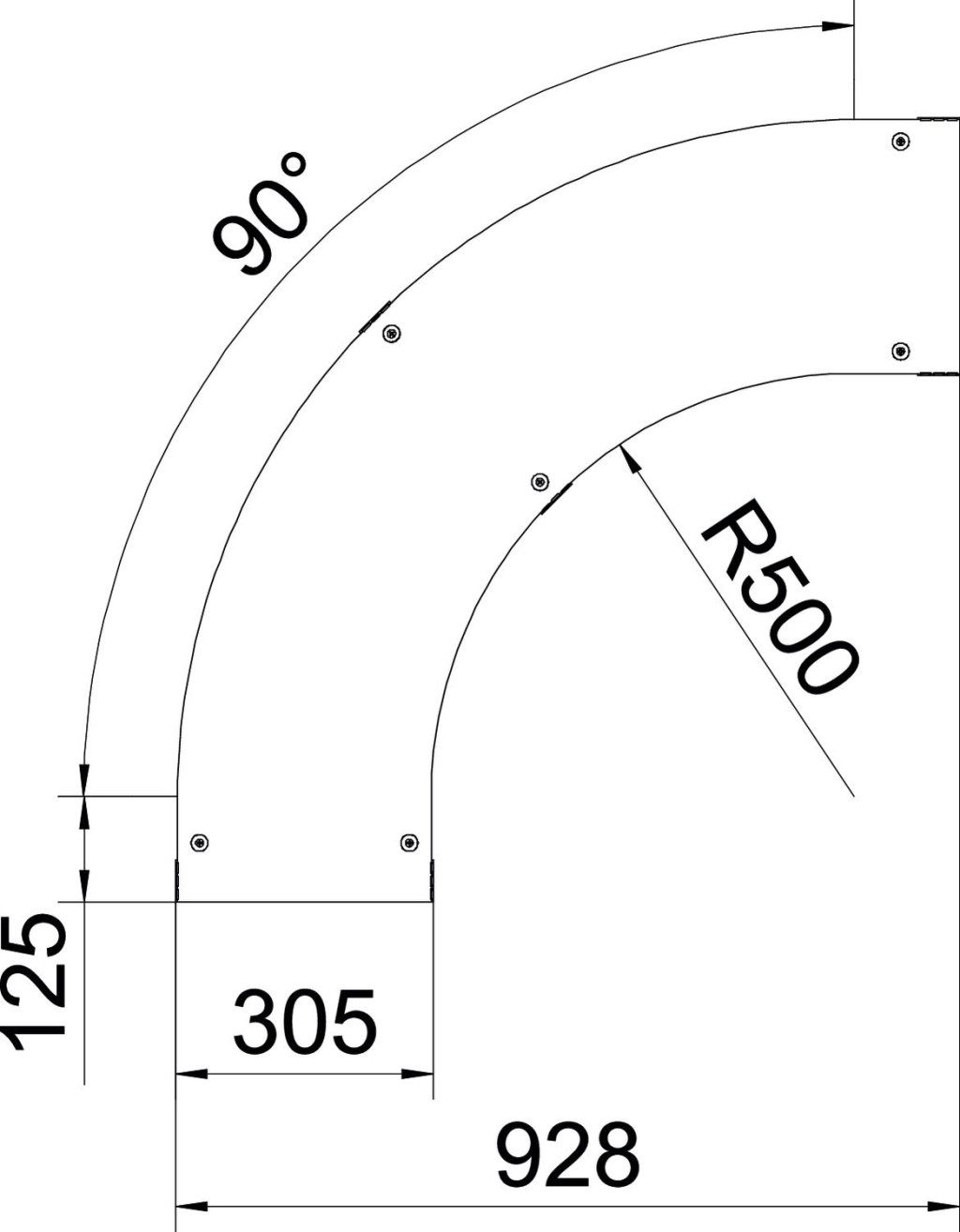 Fedél forgóreteszekkel 90°-os kábellétra sarokidomok lefedésére.