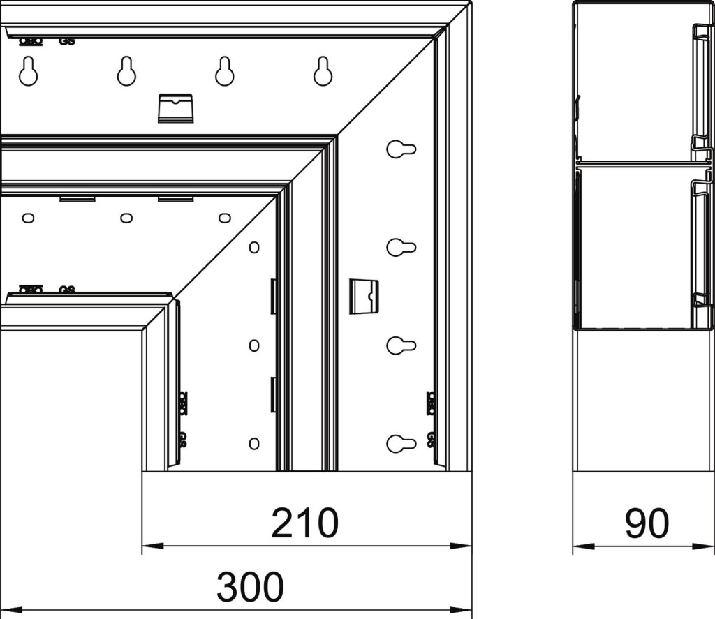 Eső kivitelű lapos sarokelem GS szerelvénybeépítő csatornák irányváltásához.