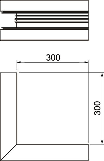 Külső sarokelem közvetlen falra szereléshez. Az idomdarabok látható felülete le van fóliázva.