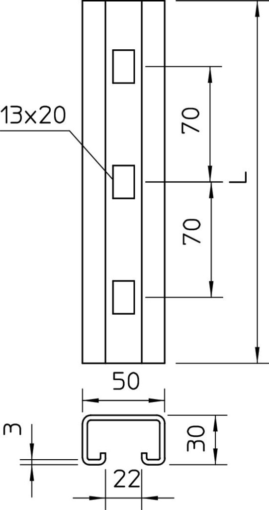 Nehéz kivitelű C-profilsínek tartószerkezetek egyedi installációjához pl.: kábeltálcákhoz vagy konzolként kapcsolószekrényekhez. Alkalmazható kábelrögzítésre U-alakú kengyeles bilinccsel.
