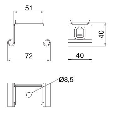 Központos függesztett tartó kábeltálcákhoz a kábeltálca oldalpofájába történő beakasztáshoz.