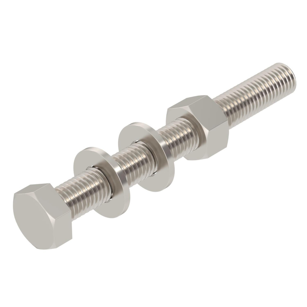 Hatlapfejű csavar konzolok, fejlemezek rögzítéséhez. Hatlapfejű anyát és két alátétet tartalmaz.