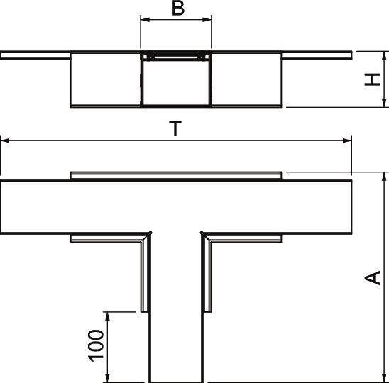 T-leágazás hőre felhabosodó tűzvédelmi bandázsszövettel PYROLINE® Rapid PLM tűzvédelmi csatornához. Függeszthető vagy közvetlenül falra, mennyezetre illetve álpadlók alá szerelhető. A toldásponti összekötők szerszám nélkül szerelhetők PLM SI. A fedél szerszám nélkül bepattintható, ez gyors ellenőrzést és utólagos szerelést tesz lehetővé. A folytonosság (potenciálkiegyenlítés) biztosításának érdekében a fedeleket az alsó részhez képes elcsúsztatva, átfedéssel kell felszerelni.