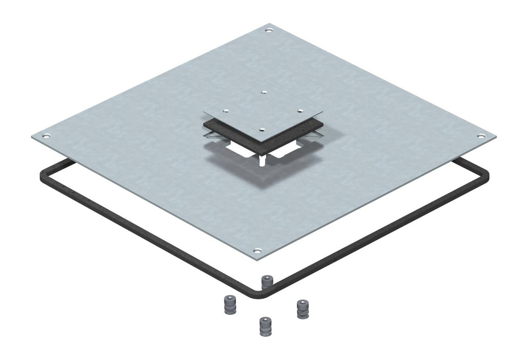 Szerelőfedél az UZD350-3 padló alatti húzó- és leágazódobozok számára egy Telitank rászereléséhez. Beépítőnyílás 3 mm-rel mélyítve van a vaklemezzel történő utólagos lezáráshoz.