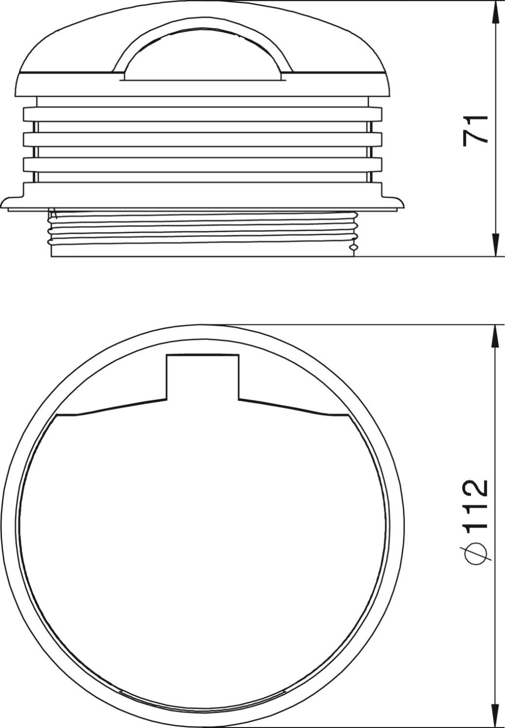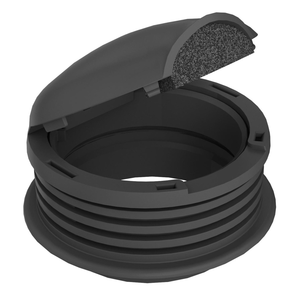 Szerelvényvédő burkolat az UDL2-80 padló alatti kivezetődobozokban és padló alatti kivezetőkben történő használatra, nedves ápolású padlókban kialakított védett vezetékkivezetésekhez, bordás erősítésű poliamid gyűrűvel és profilgumi tömítéssel.