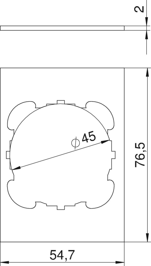 Fedlap 1 furattal (Ø 45 mm) tartókeretes installációs szerelvényhez (EK-verzió), illeszkedik a T4B hosszanti oldalához (1/2 fedés).