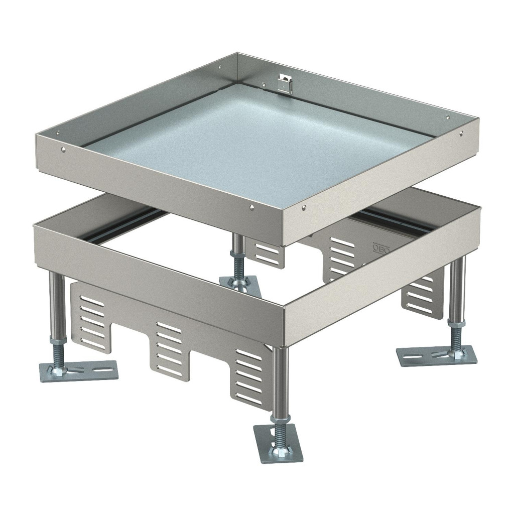 A szintezhető négyzetes kazetták szerelvényeknek álpadlókba és üreges padlókba, valamint minden esztrichhez kötött installációs rendszerbe történő padlószintű beépítésére alkalmasak. Kiviteltől függően száraz, nyirkos vagy nedves ápolású padlókhoz alkalmasak. Belső szintezővel a kazetta felső pereme pontosan beállítható a környező padlóburkolat felszínéhez. Csatornarendszerben végzendő szerelés esetén ennek megfelelő beépítőnyílással kell rendelkeznie. Egy padló alatti csatlakozódoboznak megfelelő beépítőnyílással ellátott szerelőfedélre van szüksége. A kazetták rozsdamentes acélból vagy sárgarézből készülnek. Minden kazetta tartalmaz egy 4 mm vastag acéllemez lapot, az előforduló közlekedési terhelések felvételének biztosításához. A különböző padlóburkolat-vasatgságokhoz illeszkedő 20 és 25 mm-es kazetták léteznek.