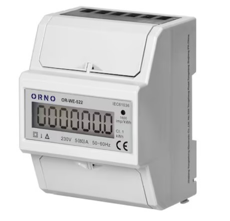 ORNO OR-WE-522 1 fázis fogyasztás mérő 80A; 3 modulos, DIN TH-35 mm