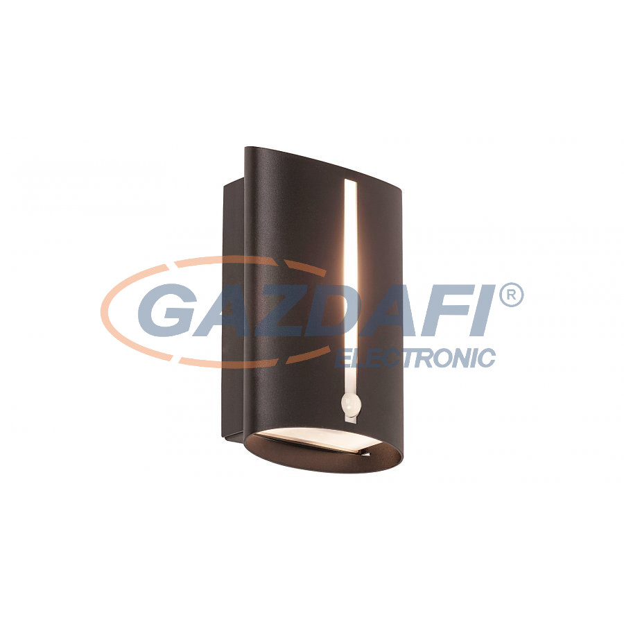 Modern megjelenésű, mozgásérzékelő szenzorral ellátott kültéri fali lámpa, 1 db foglalattal. 16 cm széles, 25 cm magas, matt fekete színű fém ház és műanyag lámpabúra, IP54-es, azaz por és fröccsenő víz elleni védelemmel. A lámpatest E27-es foglalatkialakítású, max. 25W teljesítményű, kizárólag energiatakarékos fényforrással használható. Elhelyezésekor vegye figyelembe, hogy a szenzor 90 fokos szögben, 2-8 méter közötti távolságban érzékeli a mozgást.