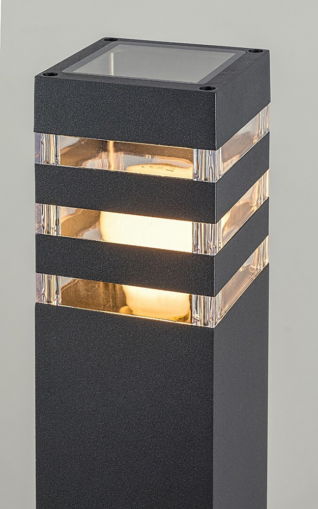 A modern Ankara kültéri állólámpa kertünk stílusos kiegészítője lehet, akár a kerten átvezető gyalogösvény, akár kertünk hangsúlyos részeinek megvilágításáról legyen szó. Az alumíniumból készült antracitszürke lámpatest felső részét sávosan előtűnő átlátszó műanyagbúra egészíti ki, ami hangulatos megvilágítást biztosít. A hosszú, hasáb alakú lámpa lapos, kiszélesedő talpban végződik. Az Ankara egy darab legfeljebb 12 W teljesítményű fényforrással használható, a foglalat típusa E27.