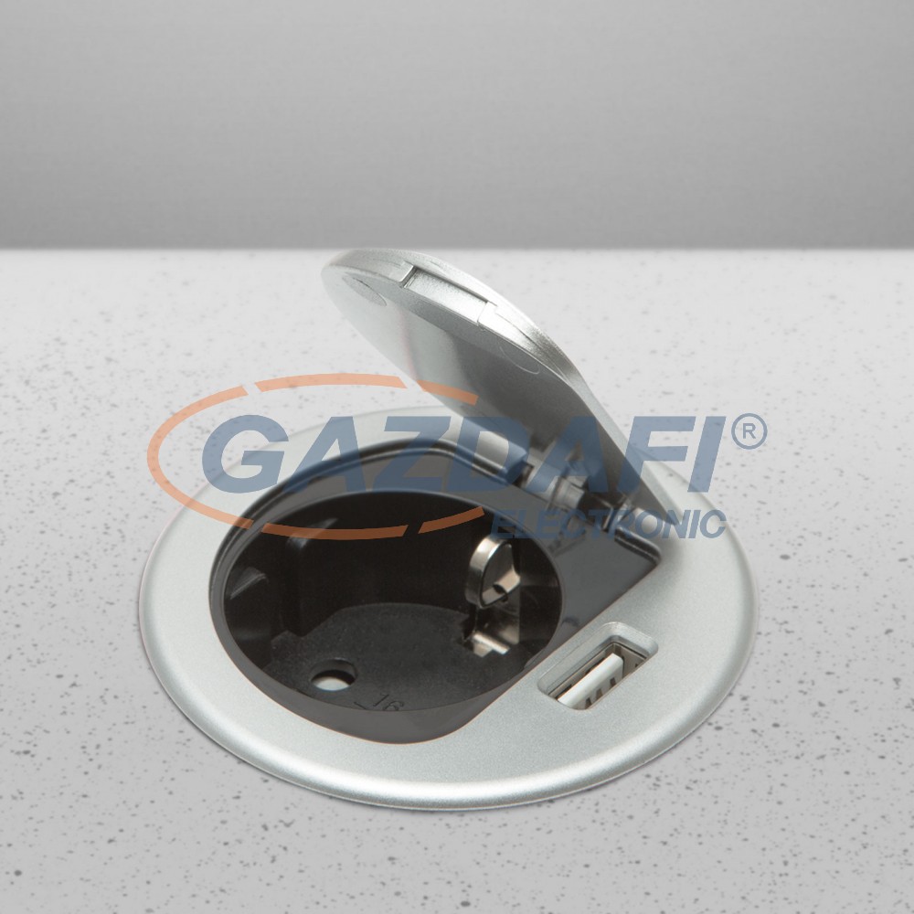Süllyesztett konnektor zárófedéllel irodai és otthoni felhasználásra, műanyag házzal, nagyteljesítményű USB csatlakozóval.