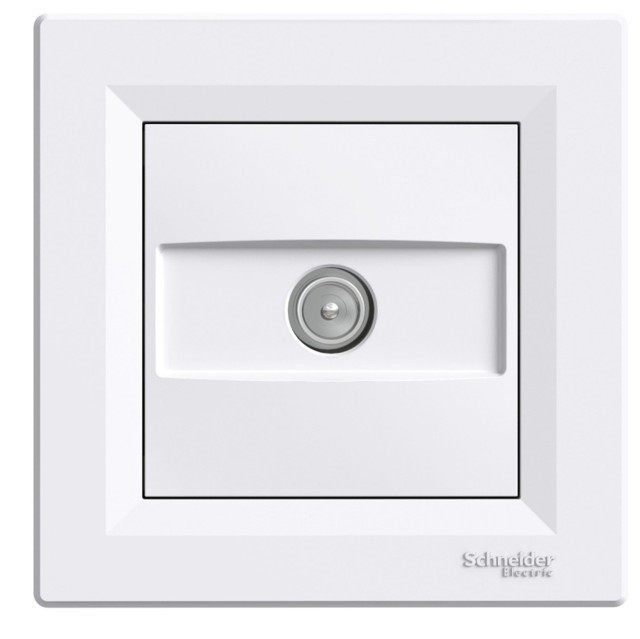 A Schneider Electric Asfora EPH3200121 TV aljzat, fehér színű, komplett szerelvény. Ebben a TV aljzatban nem folyik áram. A TV aljzat végzáró és IEC 9,52 mm típusú. A készülék rögzítőkörömmel ellátott. A TV aljzat mérete 83 mm, 83 mm és 38 mm, kiálló mélysége 10 mm. Süllyesztett szerelés is lehetséges, vagy kiemelődobozba is felszerelhető. A felületkialakítása fényes és egy elegáns felső kategóriás termék érzetét kelti. Csavaros bekötésű. IP20-as védettséggel rendelkezik. Az ABS (akrilnitril-butadién-sztirol) anyagból készült TV aljzat nagyon megbízható és ellenálló. A rézből készült vezető anyaggal ez az aljzat meglehetősen strapabíró. Emellett rendelkezik a CE minősítéssel is. Zöld prémium termék. Higanymentes, így vigyázva a környezetre és az egészségre. Ezenkívül kifejezetten lakossági, kis kereskedelmi célokra készült, megkönnyítve a mindennapi igények egyszerű és biztonságos kielégítését. Az Asfora család sorozata, villanykapcsolókat, dimmereket, hálózati és kommunikációs aljzatokat, valamint redőnyvezérlőket is tartalmaz. A kecses, elegáns dizájn tökéletesen illeszkedik minden helyiségbe Az Asfora termékek olyan jó minőségű anyagokból készülnek, amelyek idővel sem sárgulnak meg.